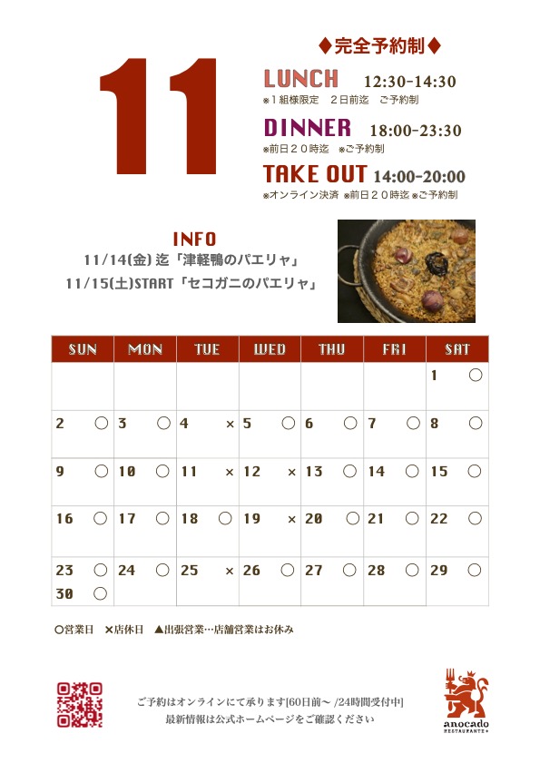 11月は前半と後半で異なるパエリャが楽しめます♡