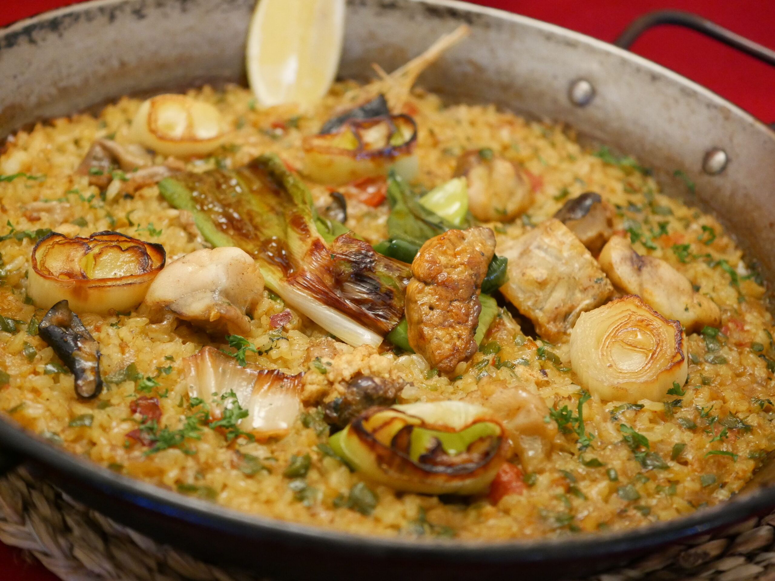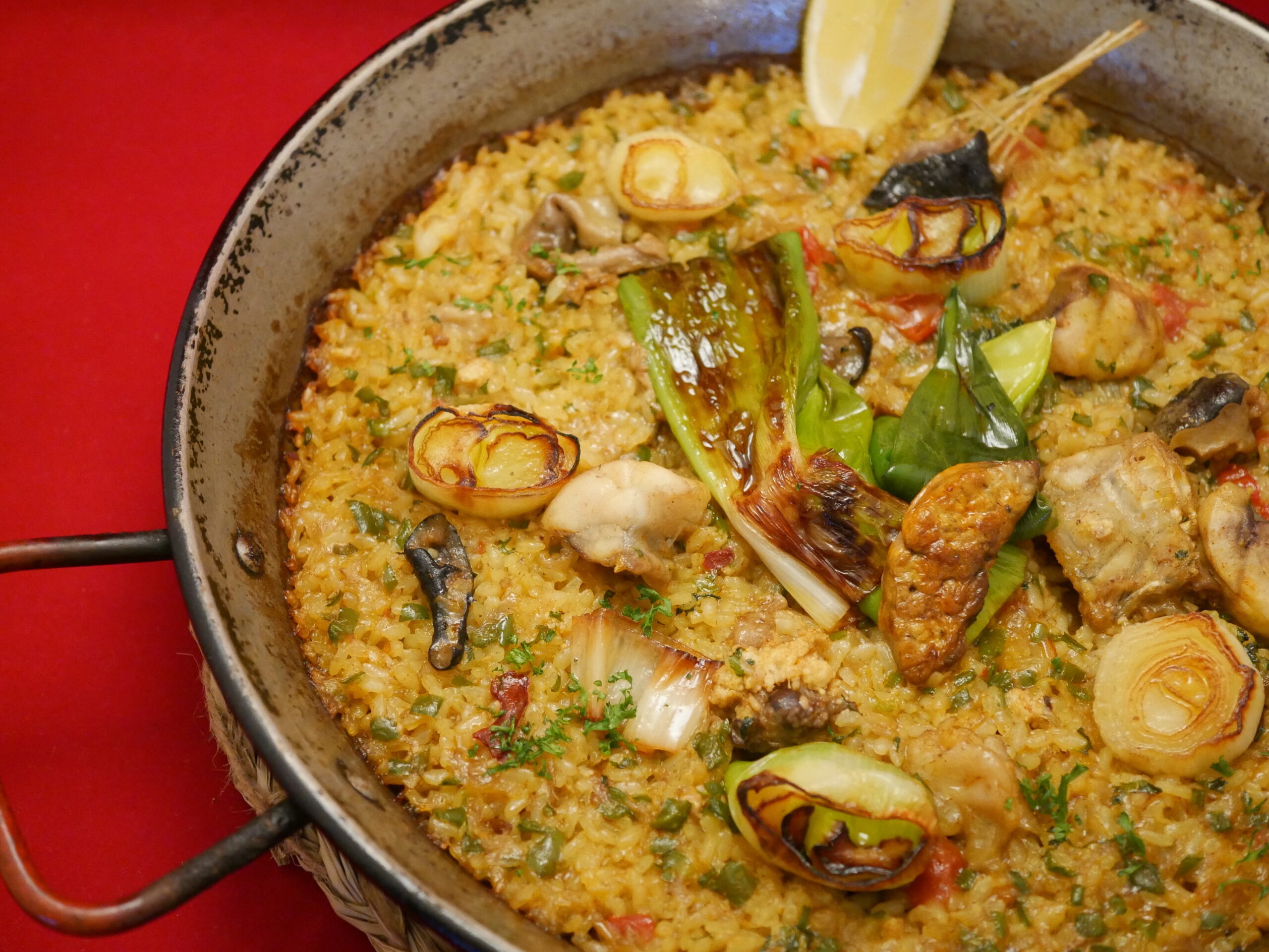 鮟鱇と下仁田ネギをPAELLAで繋げるのはスペイン・マヨルカ産のマルコナ種のアーモンド。