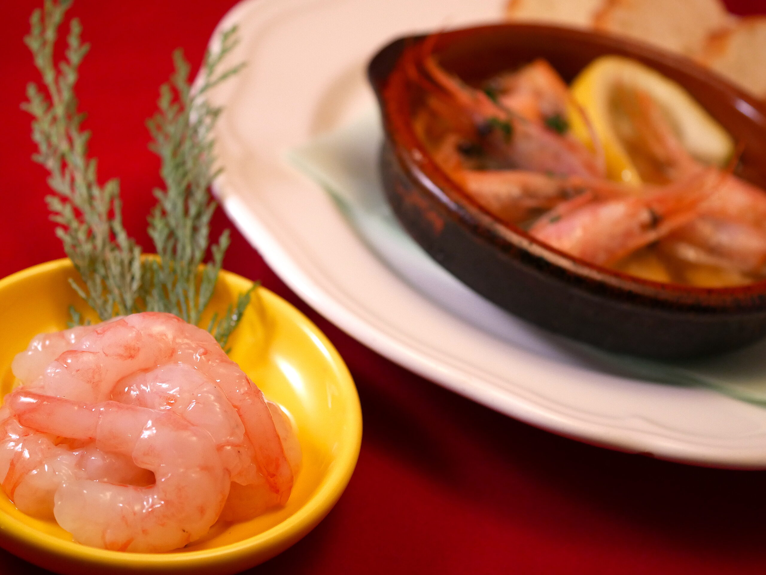 内子入りの美味しいところは南蛮海老専用にレシピ開発したアヒージョオイルでしっかり火入れして殻ごと食べられる仕様に。。。♡