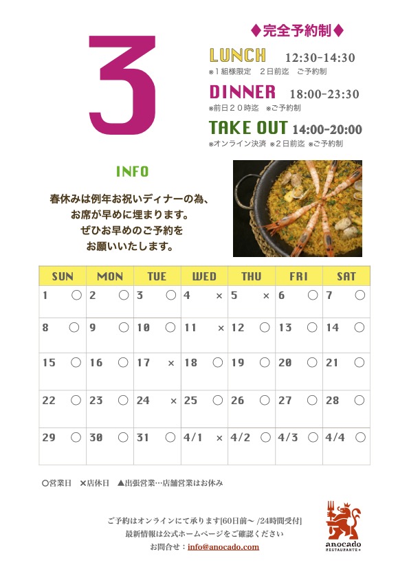 少人数での運営の為、営業中は接客業務を優先させていただきます。お問合せはなるべくメールにてお願いいたします。[info@anocado.com]